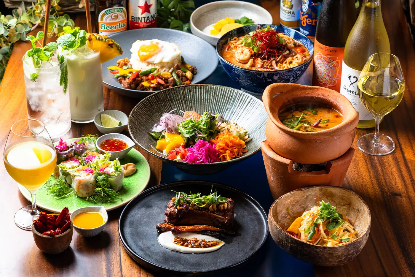 彩り豊かなエスニック料理を楽しめるコースをご用意。 エスニック初心者でも楽しめる優しい味わいの前菜から、爽やかなスパイス香るメインまで、バランスよく構成しています。 女子会や記念日のお祝い、会社帰りの食事会など幅広いシーンにおすすめ。