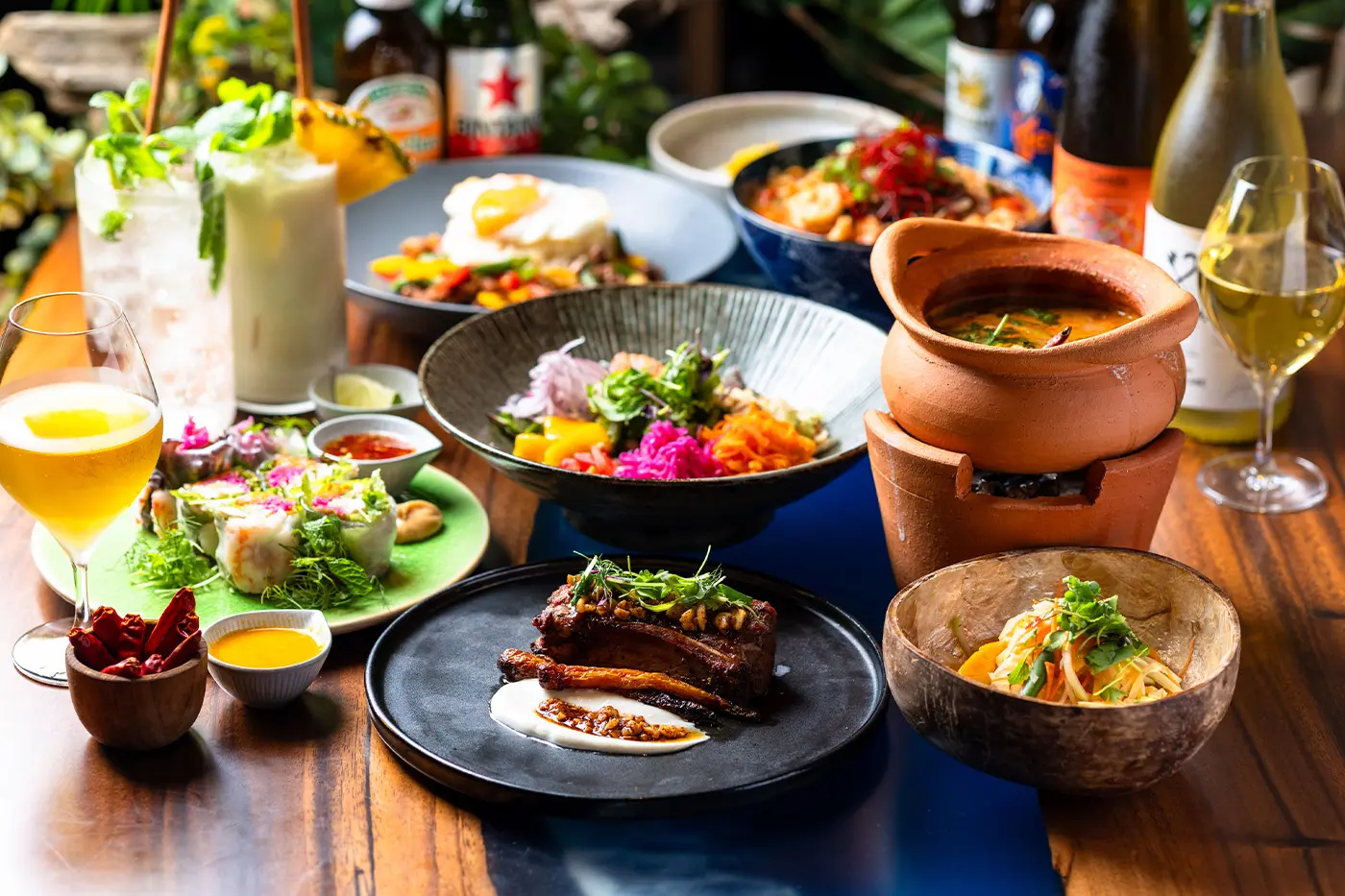 南国を感じるカクテルから料理を引き立てるワインや爽やかなノンアルコールまで幅広くラインナップ。 昼は爽やかな一杯でリフレッシュ、夜は華やかなカクテルで乾杯。 シーンに合わせた一杯が、料理とのペアリングをより豊かに彩ります。