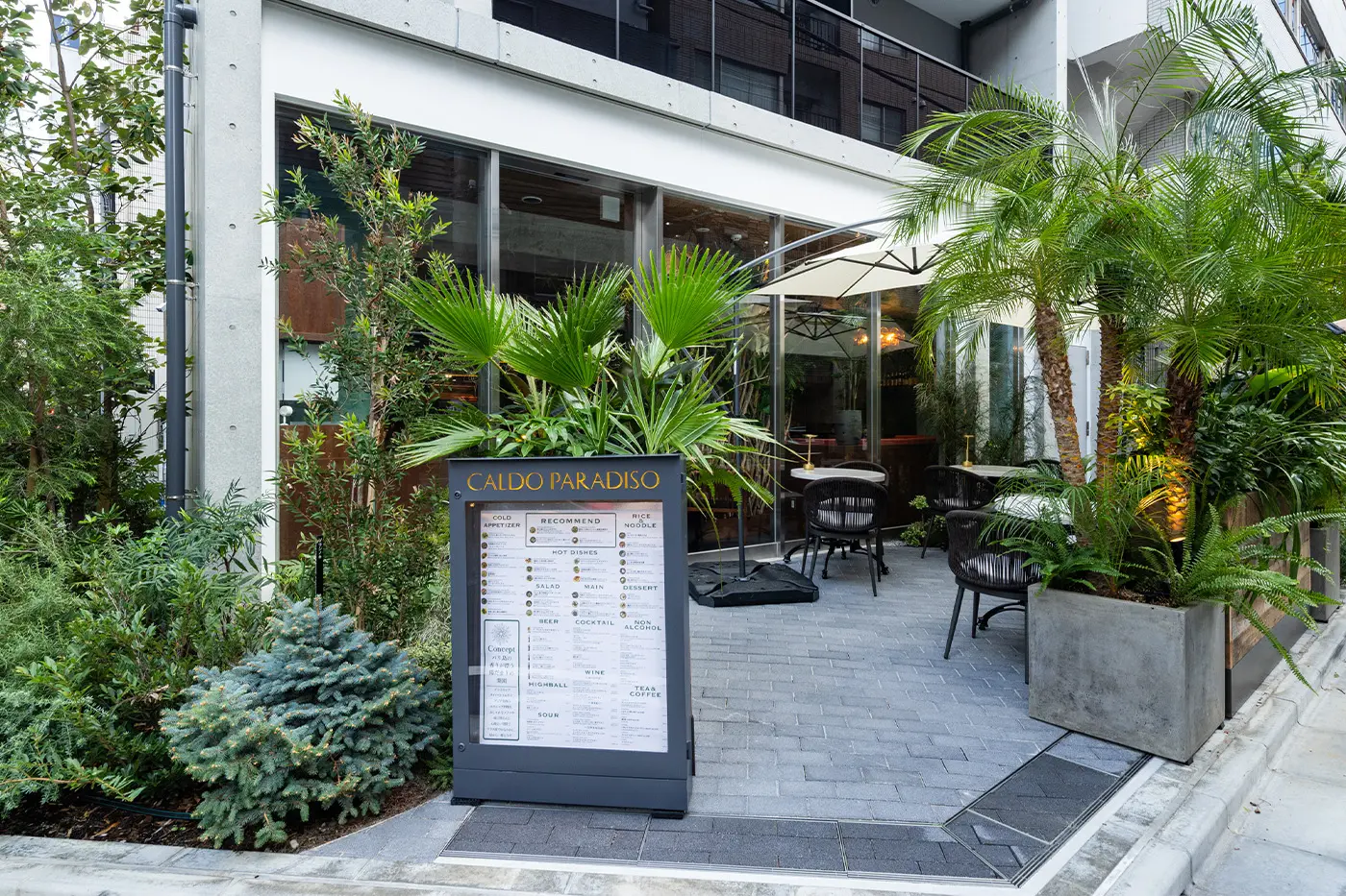 「Caldo Paradiso」は、西新宿の街に佇む、南国リゾートを思わせる癒しのエスニックレストランです。エスニック料理を絶妙なバランスで仕上げ、日本人の口に合う優しい味わいでご提供いたします。バリ島の陽だまりをイメージした店内は、緑に囲まれたソファ席や心地よい風を感じるテラス席が魅力。都会にいながら、非日常を感じられるお食事をご体験ください。