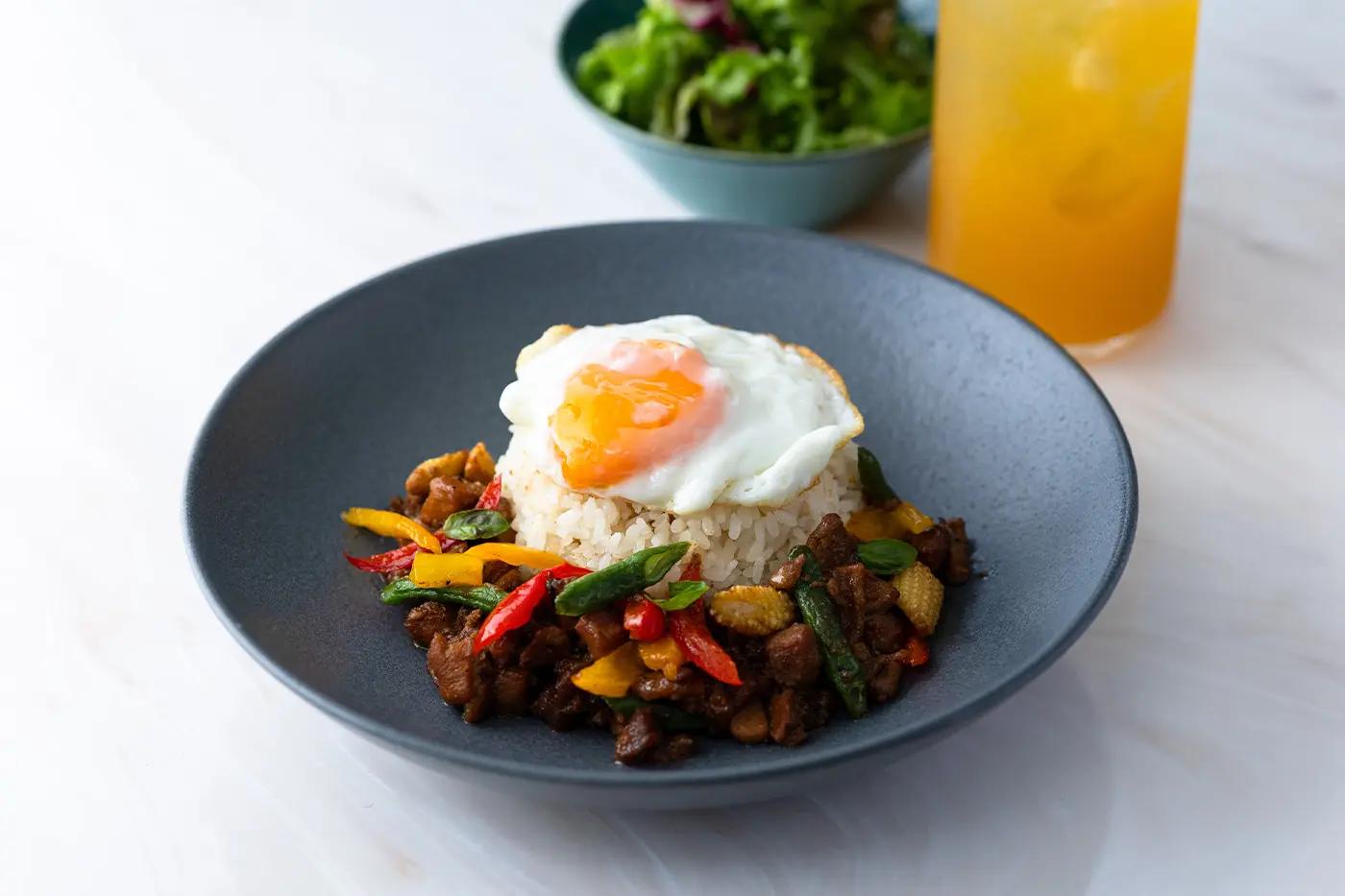 木の温もりを感じる家具と、緑に包まれた癒しの店内。まるでバリ島のカフェに迷い込んだかのような、日常を忘れる特別な時間を演出いたします。お一人様からデート、女子会まで幅広くご利用ください。